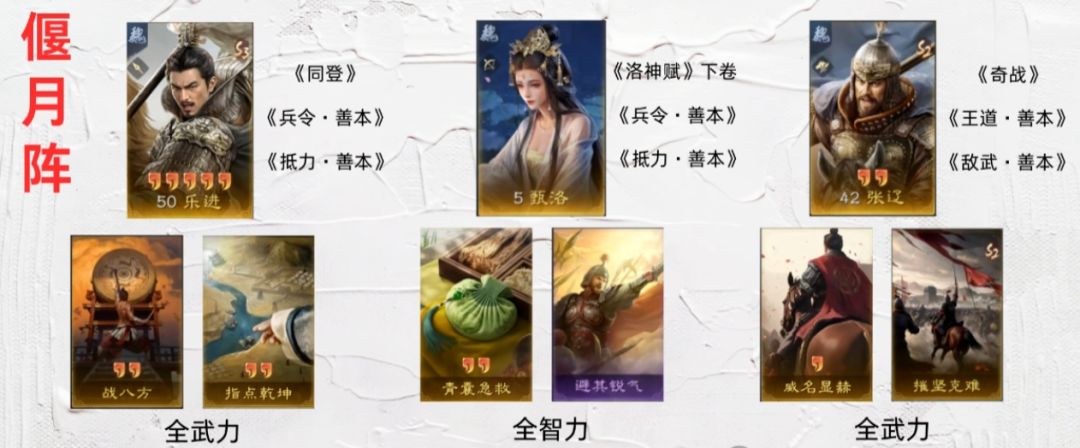第六名的乐进 + 甄姬 + 张辽阵容,先登能增益张辽,但张辽至少得3红。它的胜率波动比较大,对抗司马和陆逊是五五开,不过会被金马桶克制。