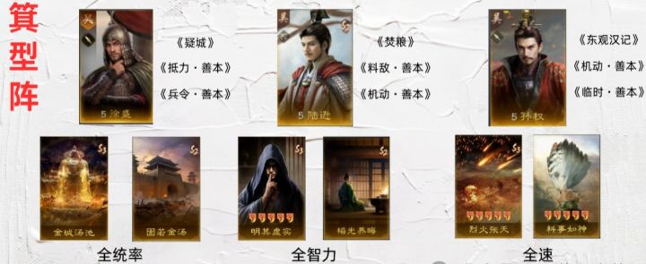 第二名的双皇陆逊(孙权 + 刘备 + 陆逊),这配置可奢侈啦,打击面广,还没有绝对能克制它的阵容。白板玩家也能玩,红度越高越强,就是造价太高,平民玩家得慎重选择。