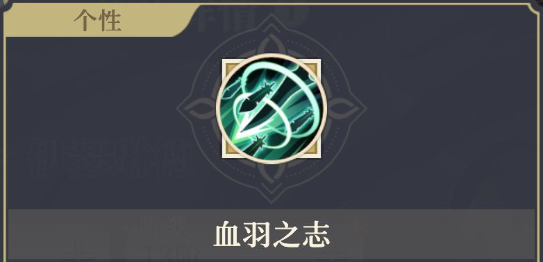 ✦[血羽之刃]被触发并消耗时,自身回复 0 / 0 / 1 / 1 / 1 点能量。自身具有[无尽罗网]时,造成的[穿透伤害]和[持续伤害]额外提高 0 / 0 / 0 / 10% / 25% 。