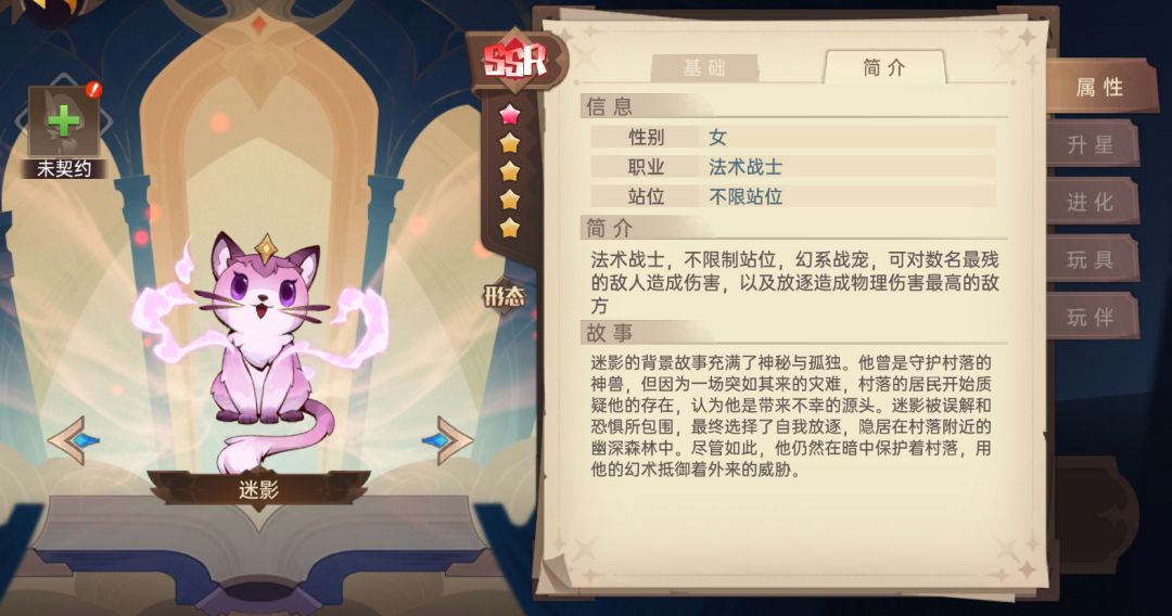 【战宠背景】迷影的背景故事充满了神秘与孤独。他曾是守护村落的神兽,但因为一场突如其来的灾难,村落的居民开始质疑他的存在,认为他是带来不幸的源头。迷影被误解和恐惧所包围,最终选择了自我放逐,隐居在村落附近的幽深森林中。尽管如此,他仍然在暗中保护着村落,用他的幻术抵御着外来的威胁。