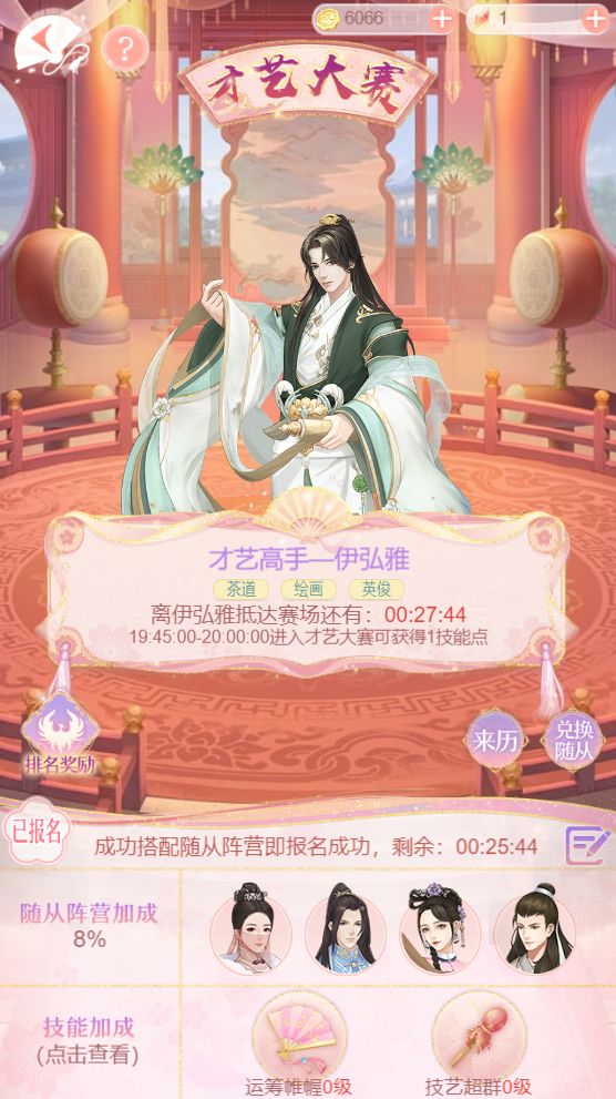 由礼部承办的才艺大赛将于近期开幕,皇城现已荟聚四海八方才艺高手,恭请小主敦促随从们勤加练习,届时一展身手!