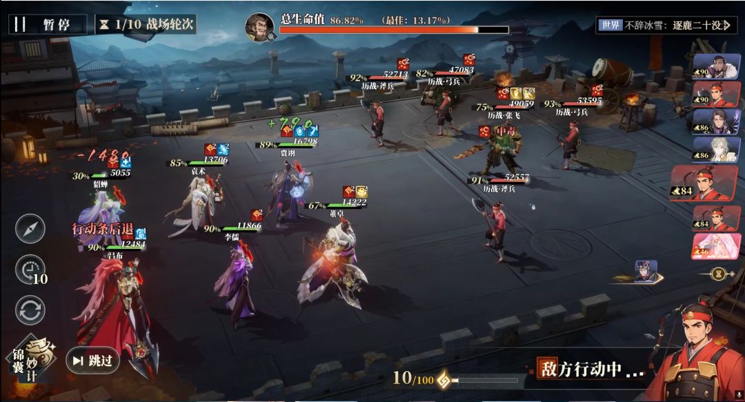 核心武将:赵云和刘备,赵云1火后可以自拉条,刘备1火后也可以拉条!蜀国队目前张飞抗伤不太行,需要1火吸血后,才能保证自己生存。诸葛果则是缺战意放大招,更推荐用张星彩作为前排。