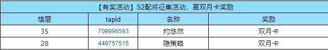 【重新开奖】S2配将征集活动,赢双月卡奖励