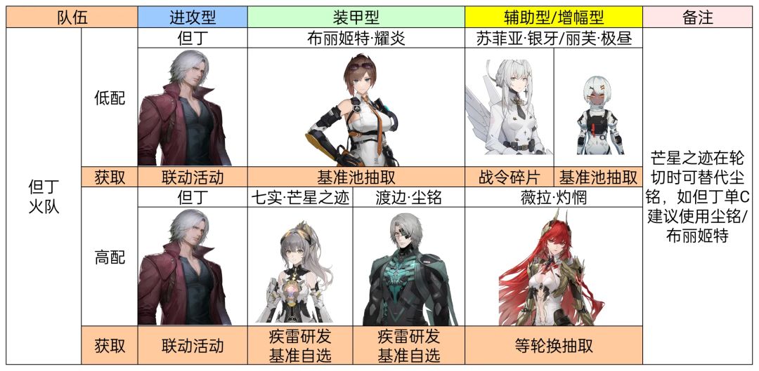 ① 但丁和维吉尔都为队伍主C,强度上考虑不建议编入同一队伍。