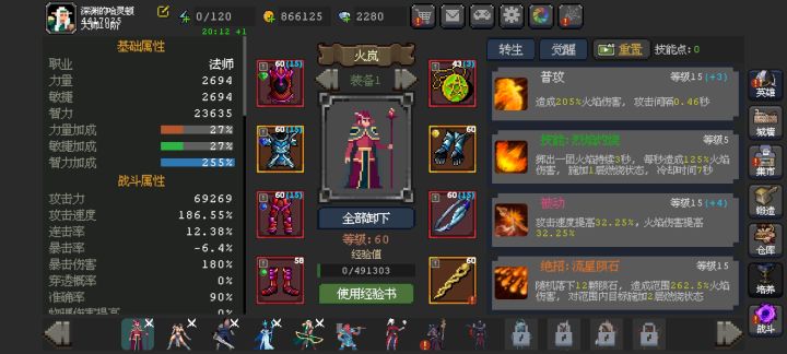配件就是加火法伤害的,不需要攻击力,我就是那加攻速和连击的装备,追求攻速,然后思路就是快速的放技能绝招就行了,我按照这个路线去搭配的