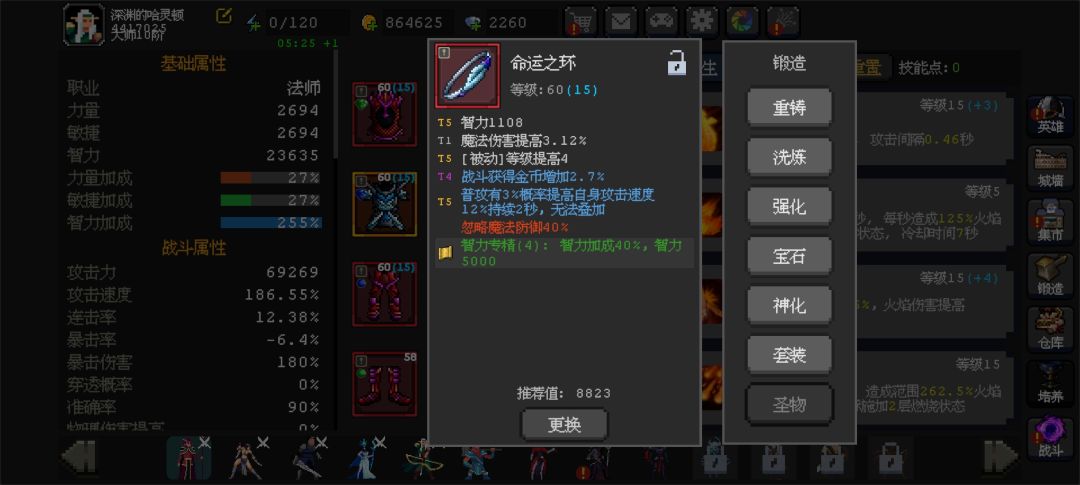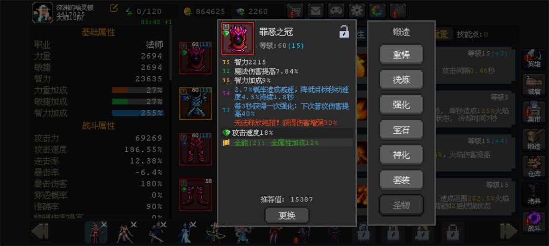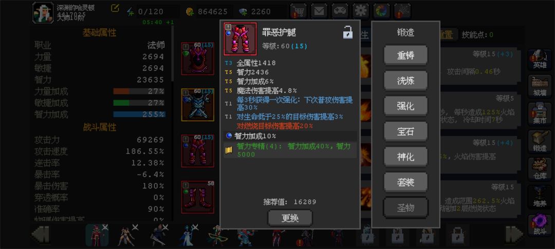 火法就是罪恶提升主属性,前期没有t6t7所以一定要刷到t5,洗练的话就是每三秒强化一次攻击了