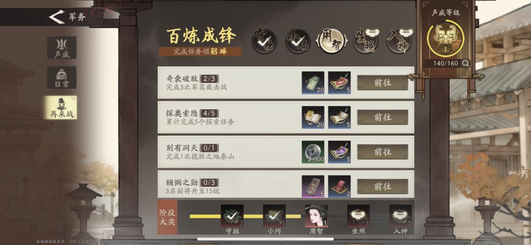 2.军务中的再来战任务很推荐做。按照上面的养成任务可以获得一个(超)级别武将貂蝉,并且还可以获得很多抽卡和养成资源,对开荒和想继续抽卡的玩家很有帮助。主线暂时不想推进的时候就可以来完成军务中的再来战和日常任务。(图七)