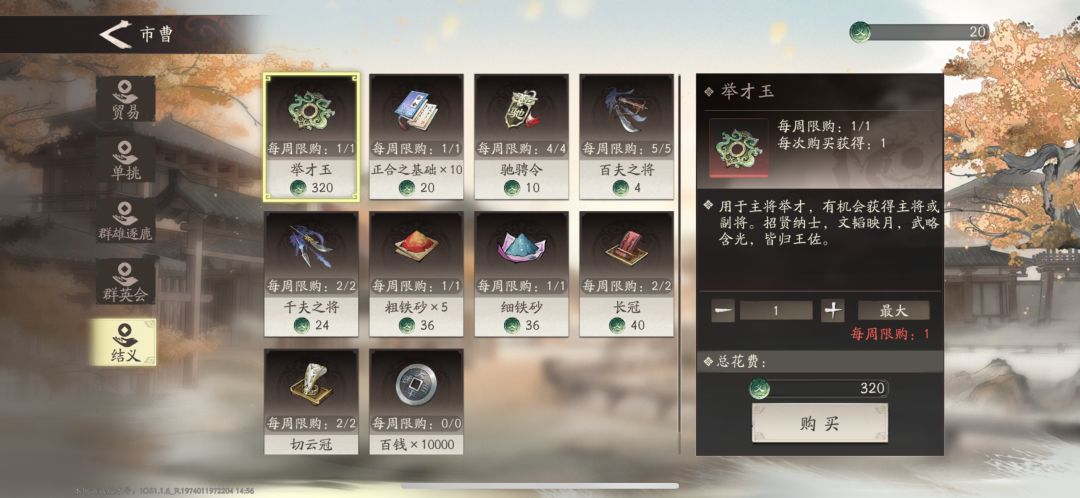 1.一进游戏,我们可以多加好友,尽量把活跃好友加满,能够每天稳定互送结义令。这个结义令在市曹忠可以换游戏内很多资源,包括抽卡的聚才玉(一周能白嫖一次,积少成多)还有很多养成资源。(图一图二)