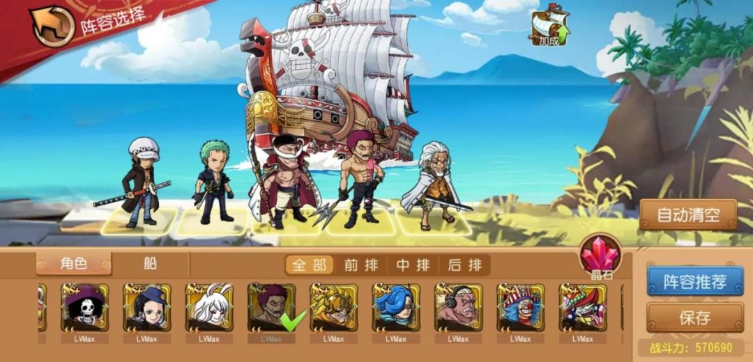 ①主流最佳阵容:突破佩洛斯佩罗(法甲)+大妈(法穿)+突破凯罗特(物穿)+突破新世界·奈美(法穿)+突破甚平(法甲)【船技:女王妈妈吟唱者号】