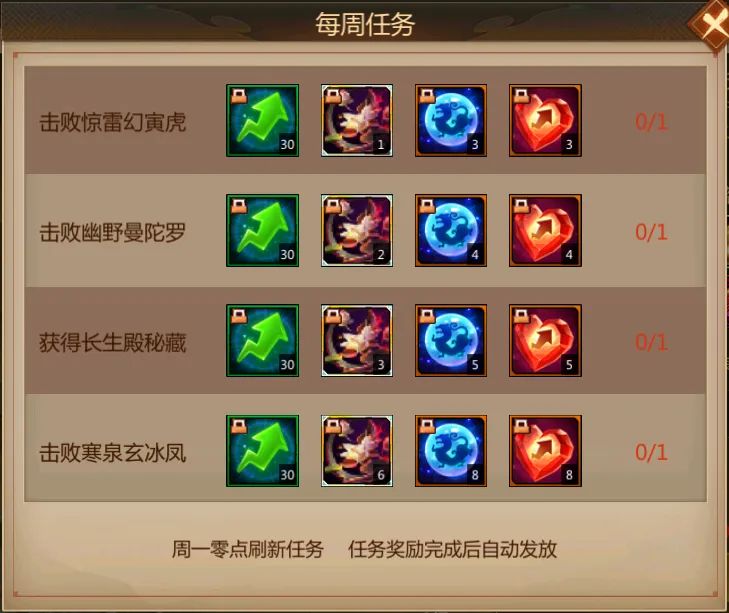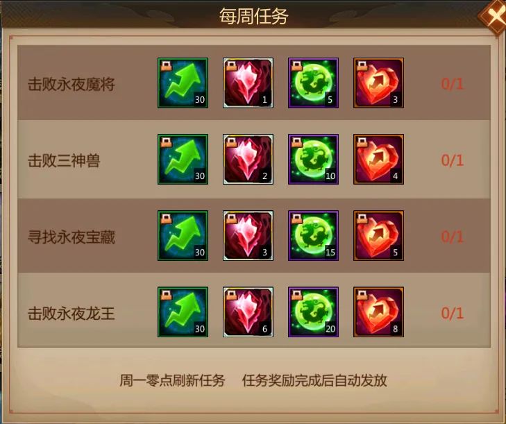每周挑战任务奖励