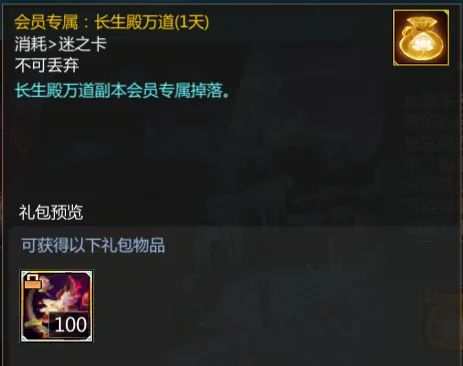会员专属掉落-长生殿万道礼包(1天):内含100个圣岳莲心