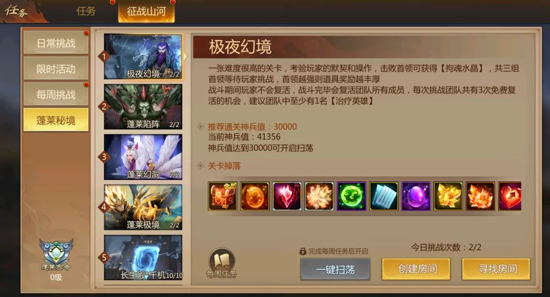 ★ 可扫荡副本:极夜幻境、蓬莱陷阵、蓬莱幻洞、蓬莱极境