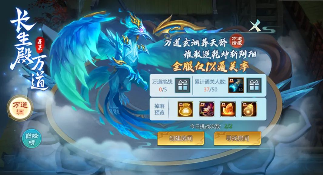 成功挑战长生殿*万道(任意模式)即为通关,全服累计通关人数达一定值,可领取全服奖励!仙术师挑战长生殿*万道可完成各种任务,领取丰厚奖励。