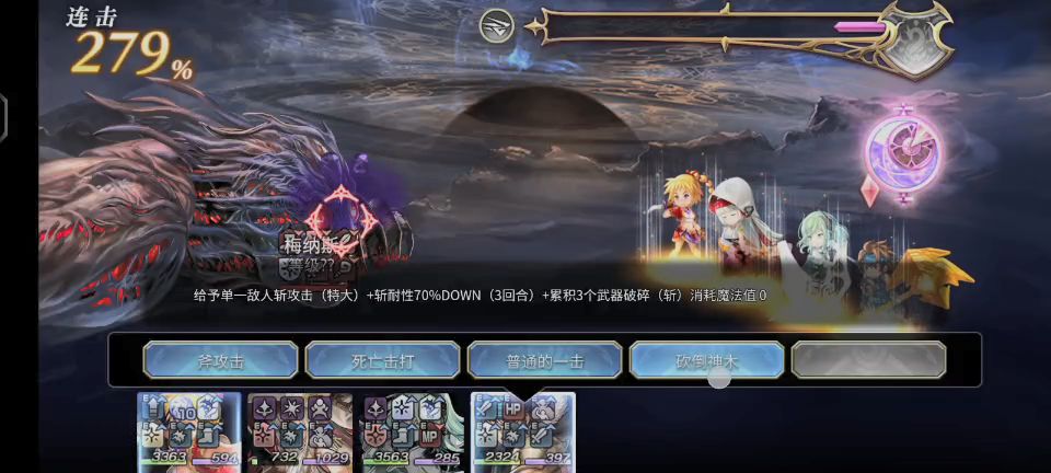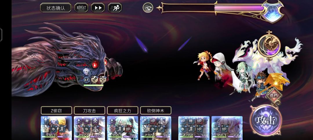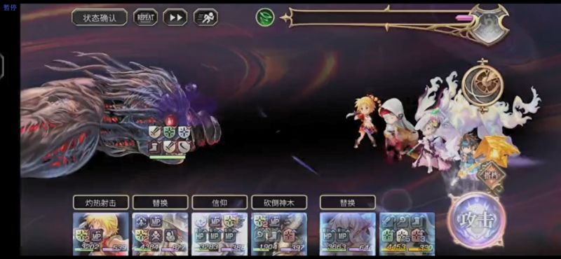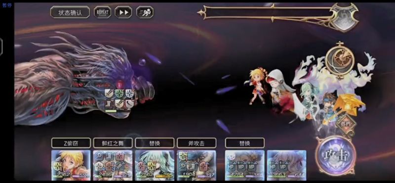 月华带走,然后mns换伊法开风阵,这里樵夫1技能可以换成mp18的小风砍,可以吃到风阵效果加af条,我是mp不够续航就平a,祺德降力智速