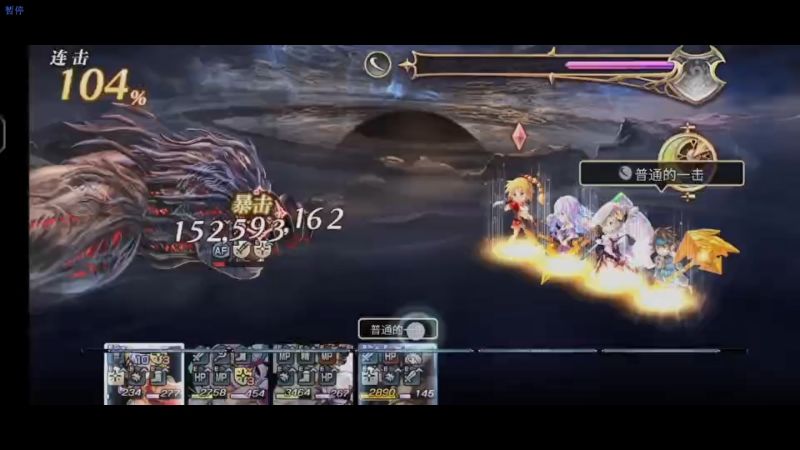 这里就要看樵夫和伊法是数值了。我的樵夫是正好5亿干掉。正常数值不够可能是4亿只有,然后下回合1.7亿左右,然后干掉第三条命。所以这里可以是两回合,就算前面一刀秒了也可以降低一下最后的压力。这里第五回合的数值我经常遇到两个,要么是3.8亿,要么1.7亿,我也不知道为什么,视频里是运气好,如果是1.7就要更注意后面的安排了。就算是这里才秒也是正常的。