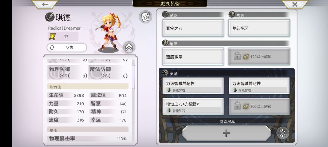 建议武器带极彩刀和极彩戒指,达到百爆(我没极彩刀,所以用亚空百暴代替,戒指梦幻也才6级+12速,不如极彩刀+20速)