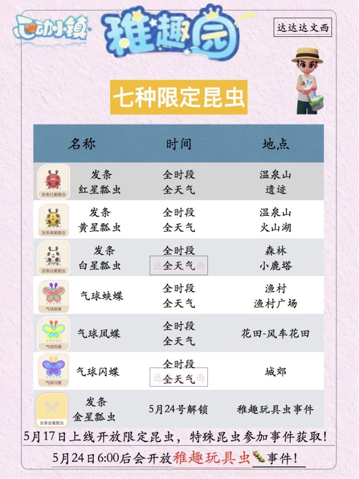 5.17 稚趣园 限定鱼、虫攻略 以及第一天出游记泡泡位置分享