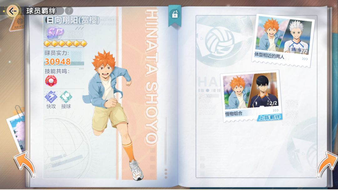 【体型相近的两人】和星海的解锁羁绊,翔阳增加快攻属性,星海增加强攻属性。