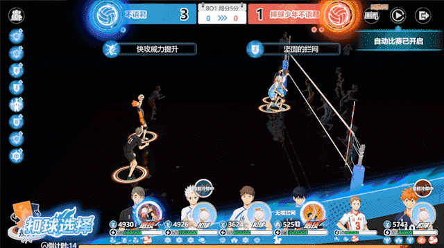 解析:非常关键的训练技,和一技能一起,只要在后排就能给全体增加防守技巧。如果接球BAD,球要么飞出场外,要么飞到对面半场,所以接球不bad对翔阳的快攻属性增益虽然只有2次过网,但是几乎是一直生效的。因为现在半周年新玩家比较多,超常发挥即暴击,不同于游戏中的P/N/B评分系统。也就是触球数字旁的一个红色小图标,代表此球超常发挥。意识正是游戏内的暴击率,所以只要我方接球暴击,翔阳下次扣球的暴击率就增加100%,这个效果是会存在于翔阳的buff栏的,所以扣球前先看一下有没有buff存在,最好在有这个效果存在的时候再让翔阳扣球。