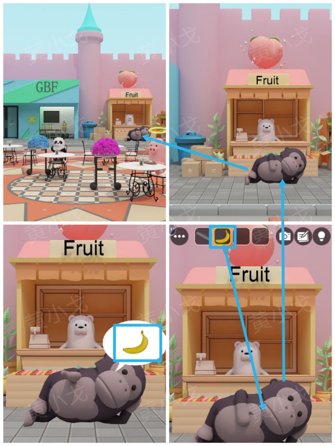 17.点击水果店门口的猴子,拿【香蕉】给它