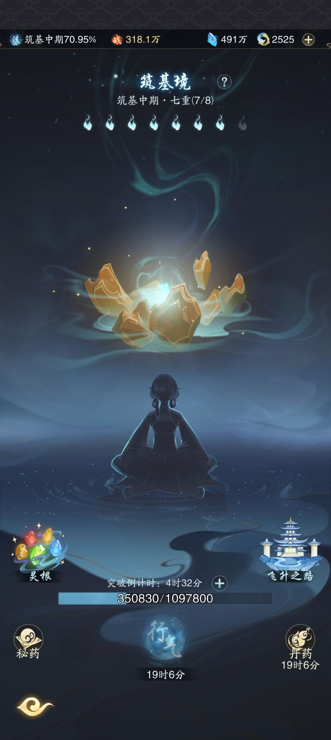 主要靠上面说的完成任务、云游、吃丹药、加速来完成,境界提升后战力也会对应提升起来。