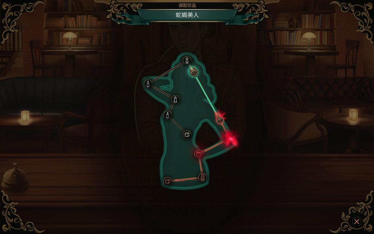 由于主角的主视角是调酒师,因此本作刚开局时很容易让人误认为是与《VA11 赛博酒保行动》类似的氛围向调酒玩法文字冒险游戏。但本作的调酒小游戏非常的简单,可以说是没有什么难度——玩家只需要操控鼠标沿着线快速划过去即可,需要一定的速度以避免被红色箭头追上导致失败。实际上只要不是手抖卡住了,基本都不会翻车。