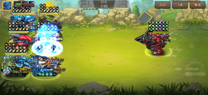 第一战,艾利双发突击阵容,不算刮痧,但是一发只能打8%,用的是超频团队芯片(39级)。🐶东西回血也就算了,会反击回盾回血?