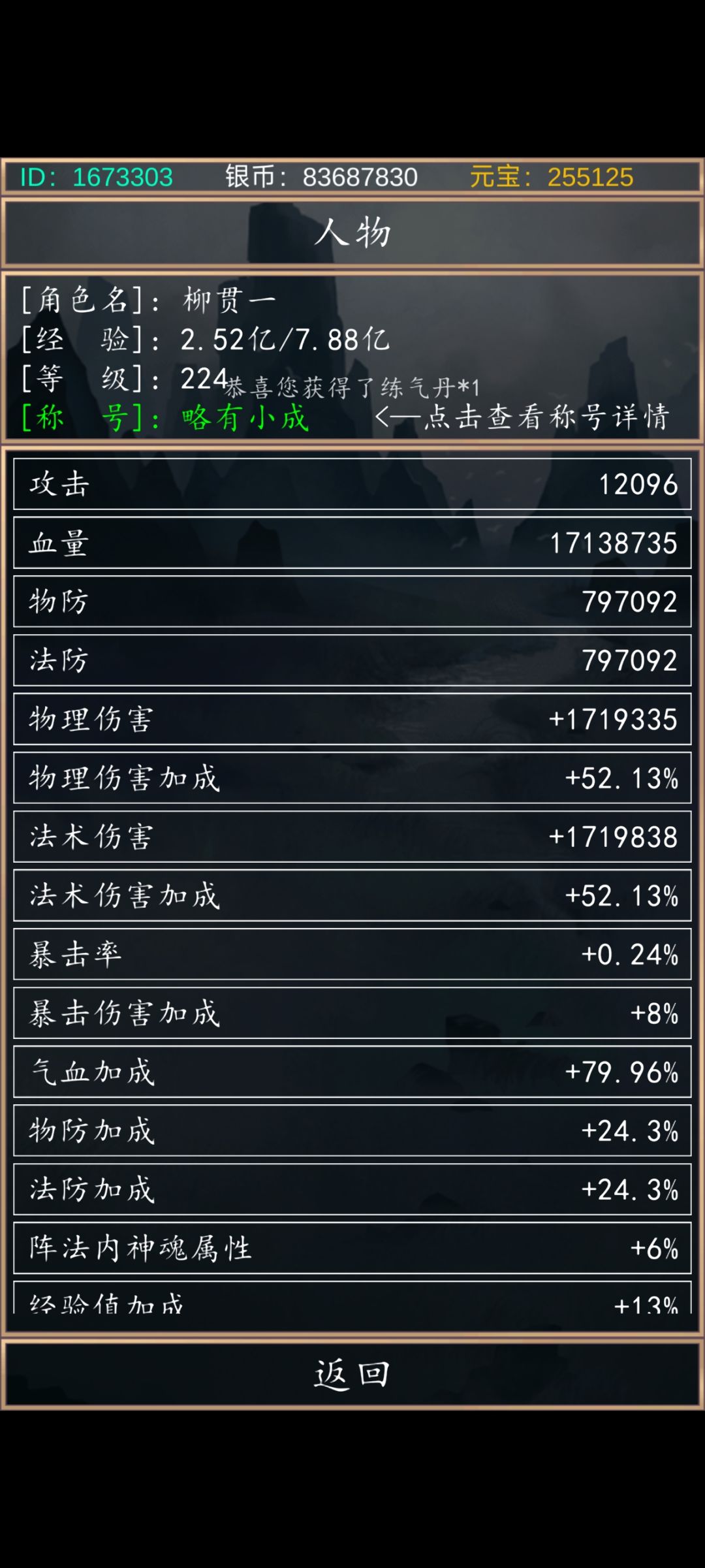 在论坛还有群里面没搜到50级相关的帖子 之前八十级的时候挂了一下没打过50级妖王 这个属性快追到100级妖王属性了 提供一个参考 后面又打了100级 打完还剩3w血很极限 200级妖王属性
