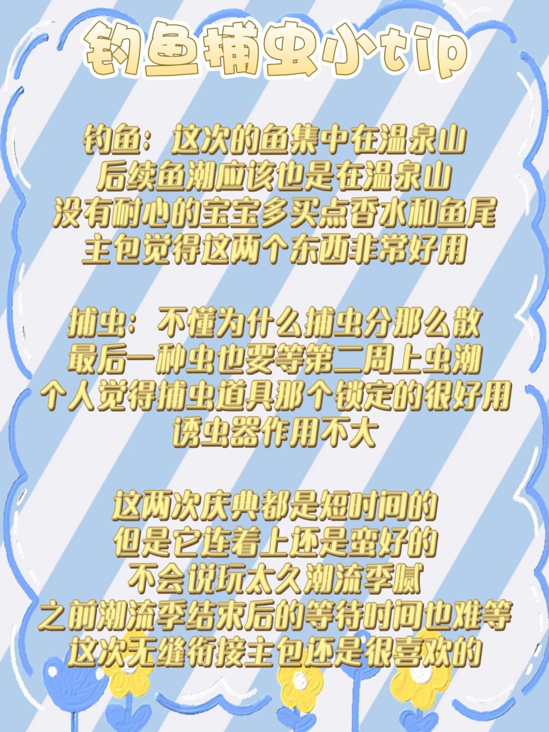鱼类和捕虫点位来啦~这次的鱼建模报看,其他的还行,整体和上个庆典大差不差