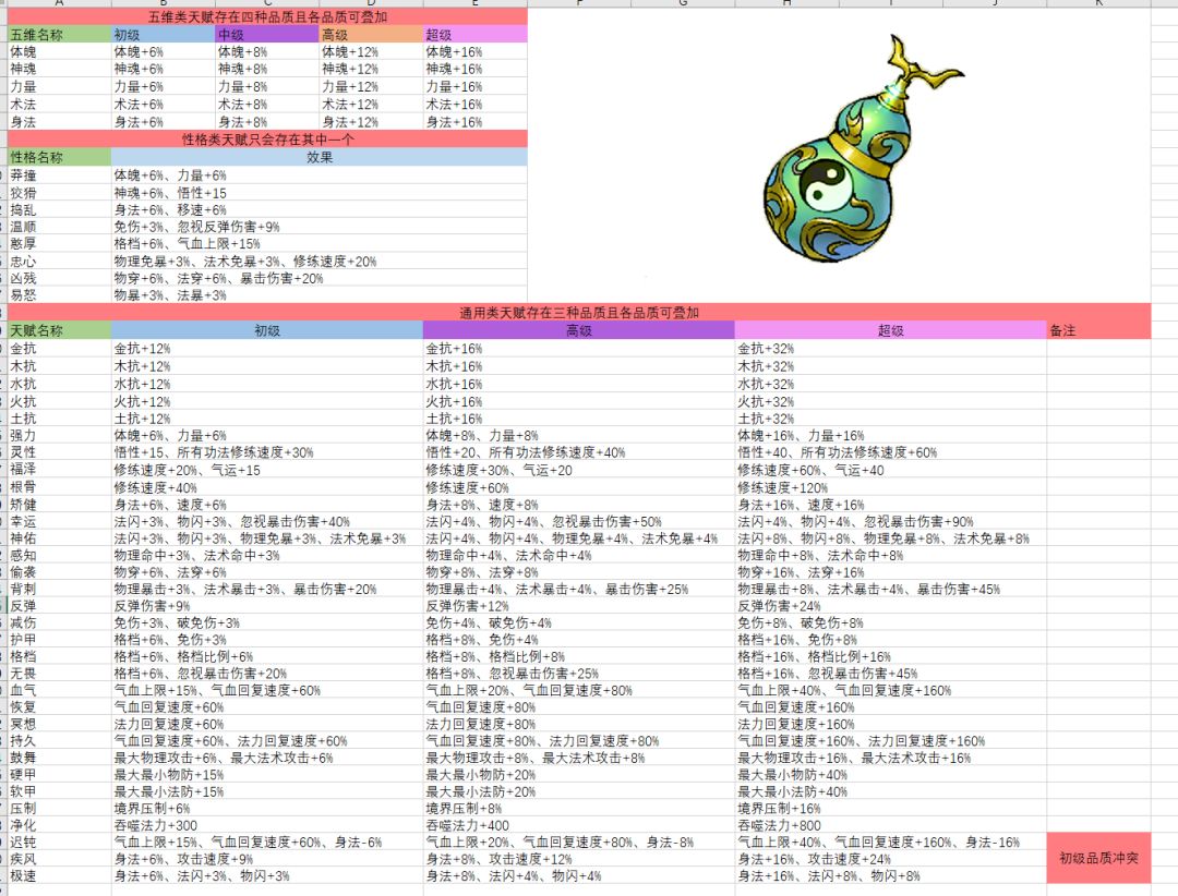 ④普通类:如气血、初中高级的五维等,这些天赋除极速、疾风、迟钝有冲突,其他的都互不冲突。