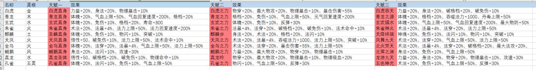 真灵天赋汇总(未完全收集)