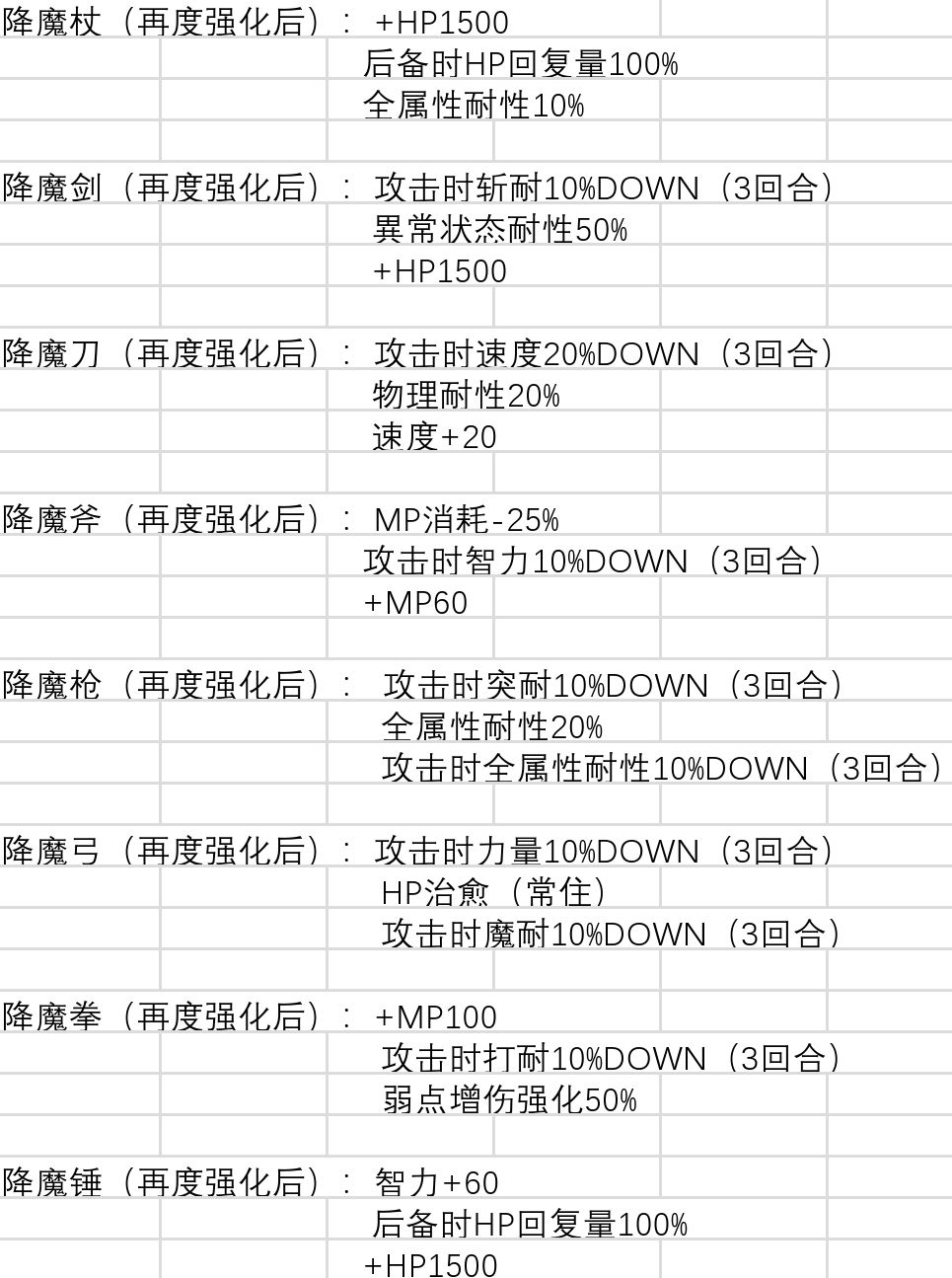 第三部最终篇新增武器防具效果/旧武器强化后效果