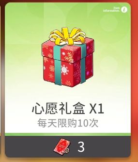 心愿礼盒作为本次活动的兑换货币,它和心愿贺卡的兑换比例为3、5、7、9、11、15。正常每日可以兑换6个,超过6个后固定为15张换1个礼盒。