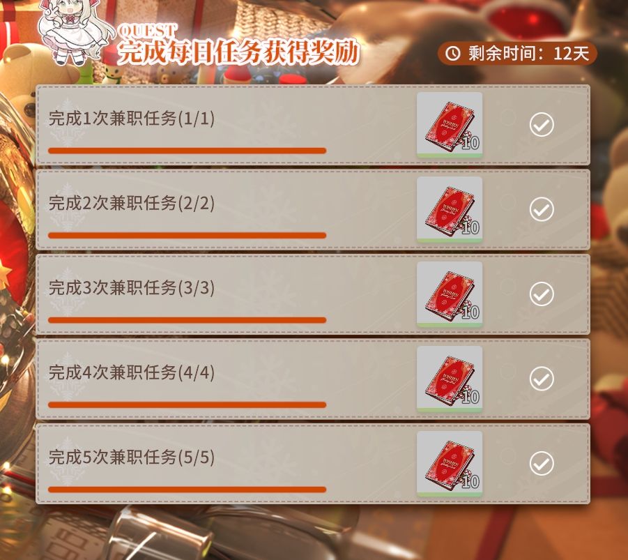 大概是新出的采集岛让官方觉得非常满意吧,本次活动取消副本而是改为兼职任务5次。