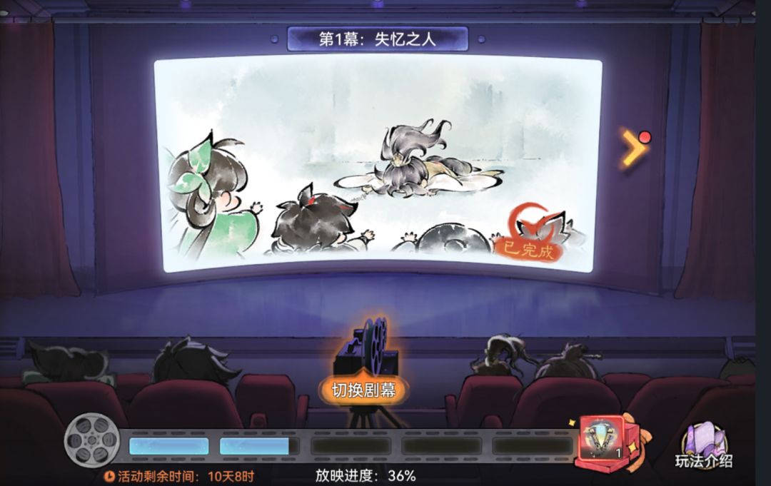 放映厅活动共有21幕剧幕,每推进一幕都可获得寻仙令等剧幕奖励。部分剧幕通关后还可解锁挑战模式,完成挑战还可获得灵玉等额外奖励。