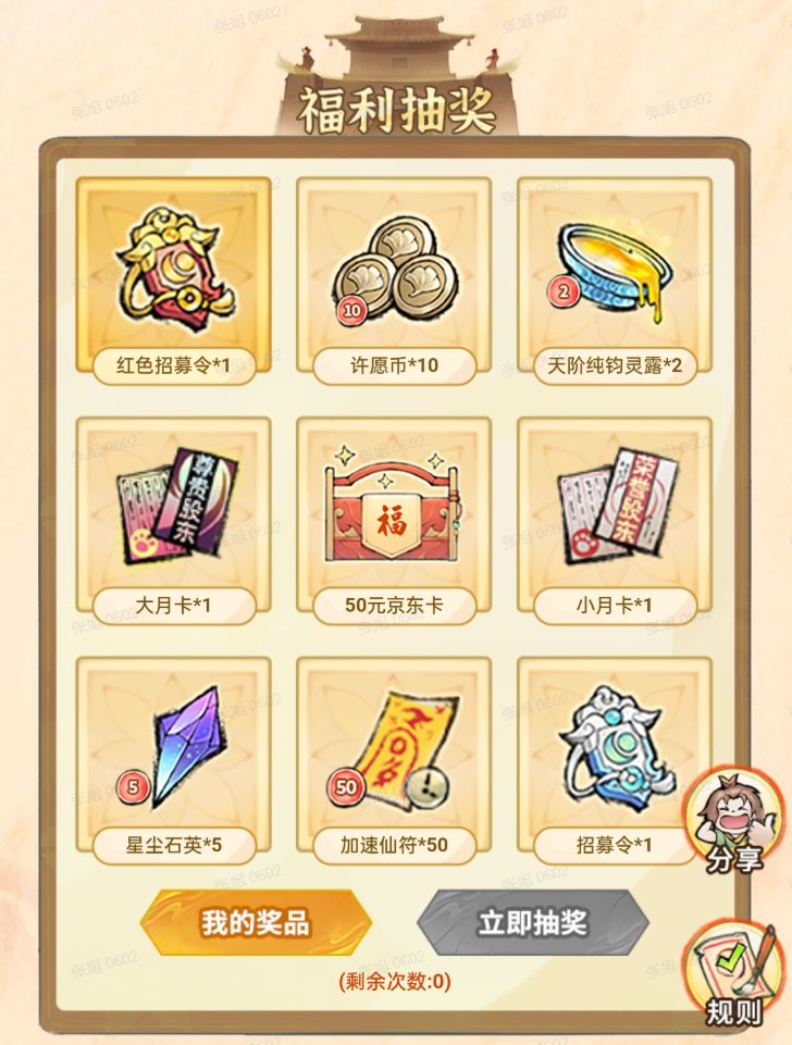 活动期间,宗门等级达到10级及以上的祖师只要前往官方小程序社区,登录并完成账号绑定后即可参与福利抽奖,有机会获取京东卡、大/小月卡、红色招募令、许愿币等珍稀道具,各位祖师可不要错过了~