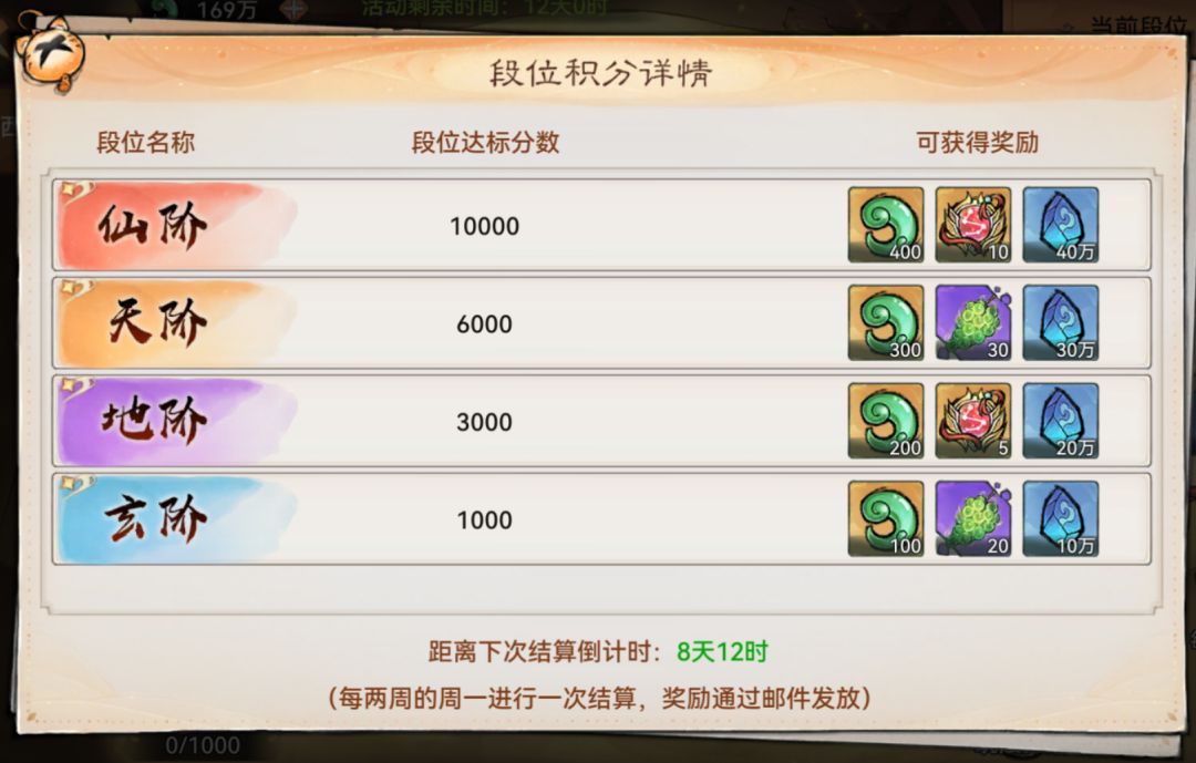 每次历练结束后将会根据试炼进度结算活跃积分和段位积分。累计活跃积分可解锁试炼密卷奖励,累计段位积分则可获取寻仙令等段位奖励和取经宝匣等段位积分排行奖励。