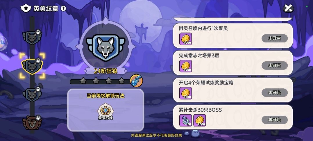 荣耀试炼每天只能打三次,所以会卡在24阶狂狼
