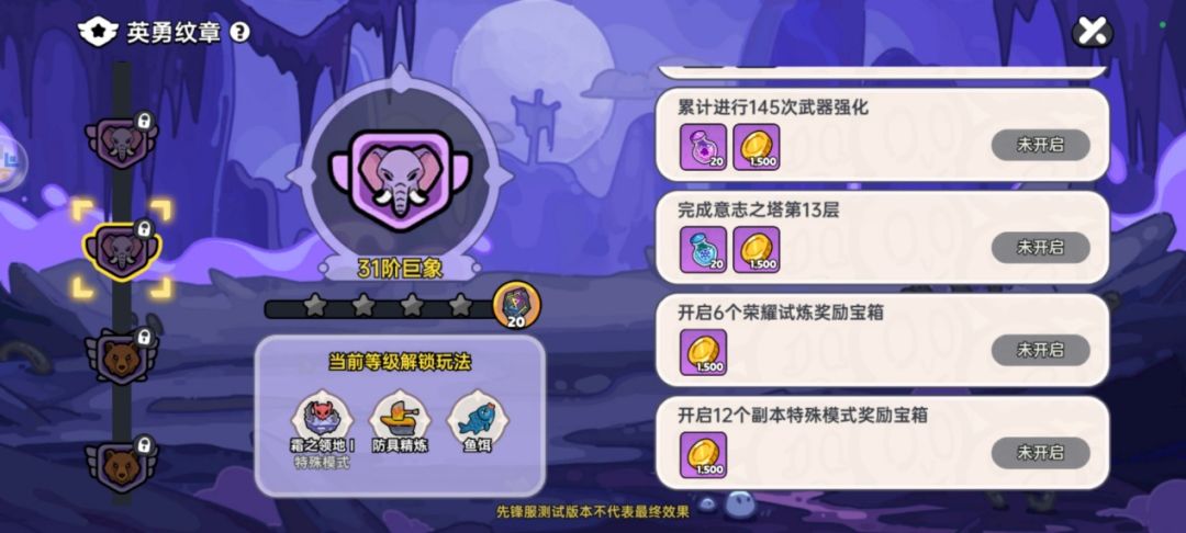 1.优先完成纹章任务,解锁更多游戏内容(第二天最高能达到31阶巨象)