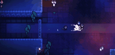 然后就是冲刺,玩过元气骑士的朋友应该很熟悉了,冲刺会有一小段无敌帧,也就是说冲刺经过敌方的子弹是不会受伤的,但冲刺结束的一瞬间是没有无敌帧的哦,所以要把控好冲刺距离不要迎头撞上弹幕。同时冲刺也担当了跳跃的功能,在有一大段空隙的平台间可以冲刺过去,不会掉下。不过每次冲刺都会消耗左上角的体力点,初始只有三点,在两秒没有冲刺后就会迅速回满。