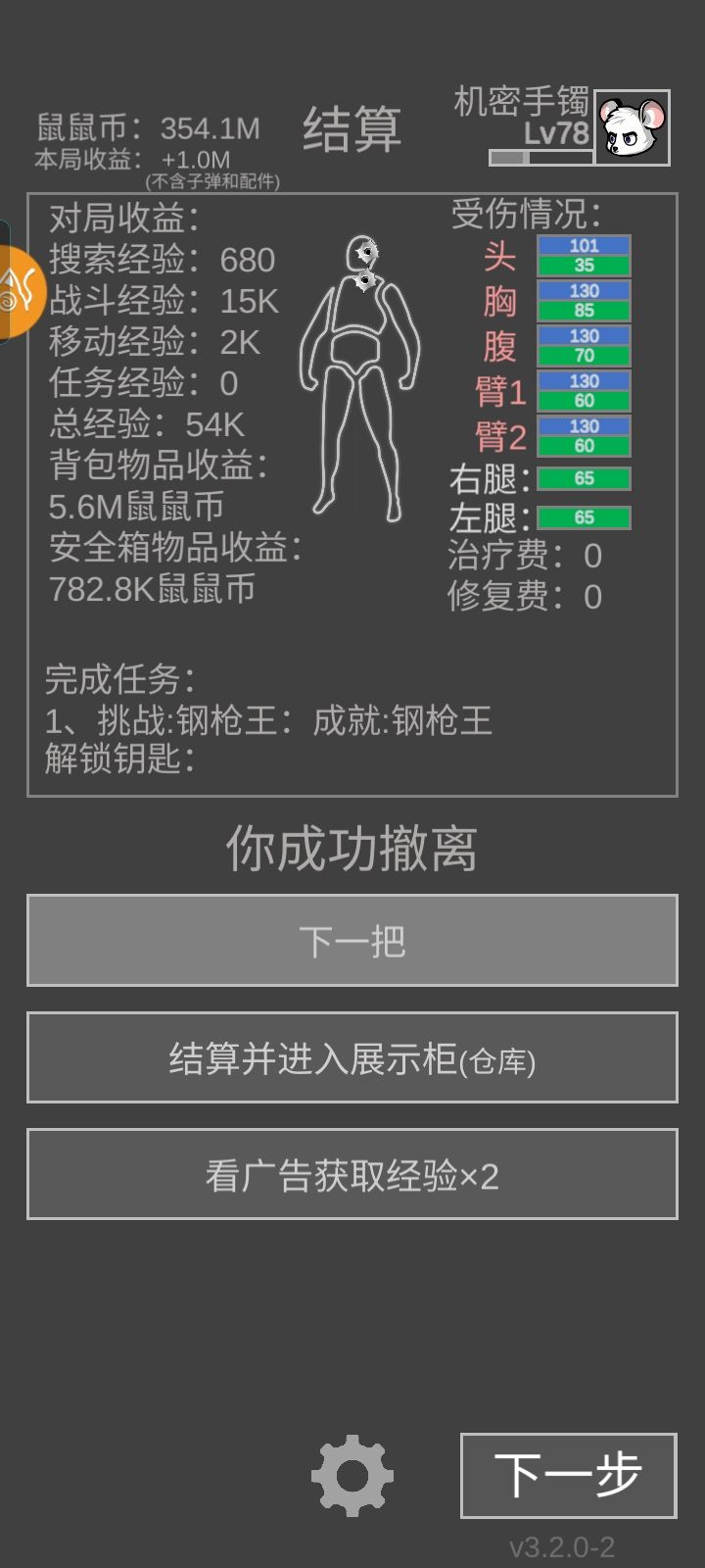 玩到后面,主要是拆金配件赚钱。努力摸金摸红,还没击杀“玩家鼠”,拆它的武器配件赚钱💰💵