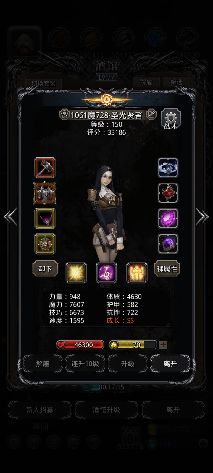 圣光:始终奶,有点刷盾锤,魔技多人回复水环