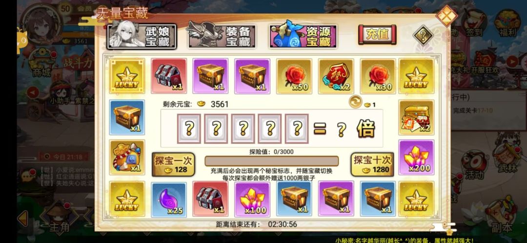 ●第二个活动是无量宝藏,我只推荐抽修炼材料,花个小几千可以把修炼直接拉到蓝色。白嫖小氪可以等自己等级升上去以后出活动再做,氪佬直接拉就行,配合其他氪金活动,修炼能一路到红。如果你进去不是这样的页面可以使用🔄