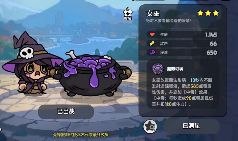 女巫是偏向PVE的角色,被动技能可以给女巫带来高额的攻击力加成,最高可达到30%的额外加成,在未来的毒弱点BOSS中,女巫的出场率会达到最高。