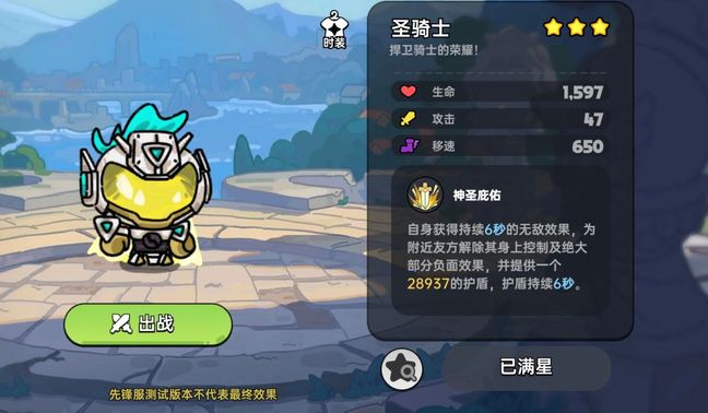 圣骑士作为辅助角色登场来说有着不俗的防御能力,三星的圣骑士能给队友提供大量的护盾的同时解除绝大部分的控制效果,同时自身6秒的无敌效果会给自己的生存能力大大提高。在偷别人BOSS的时候也能做到不被敌人技能集火秒杀。