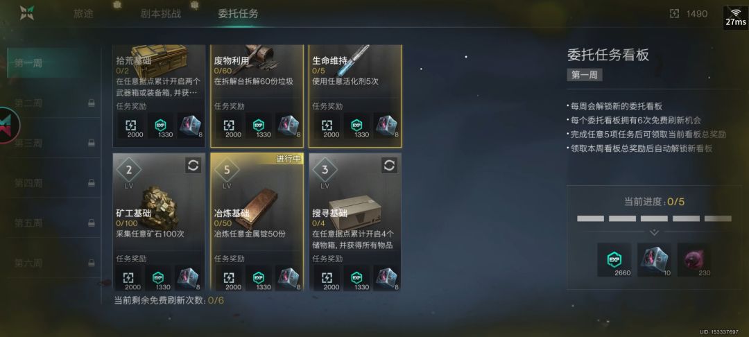 ③选择悬赏任务。(利用刷新功能,选择简单容易的,比如拍照,制作金属锭,载具等)