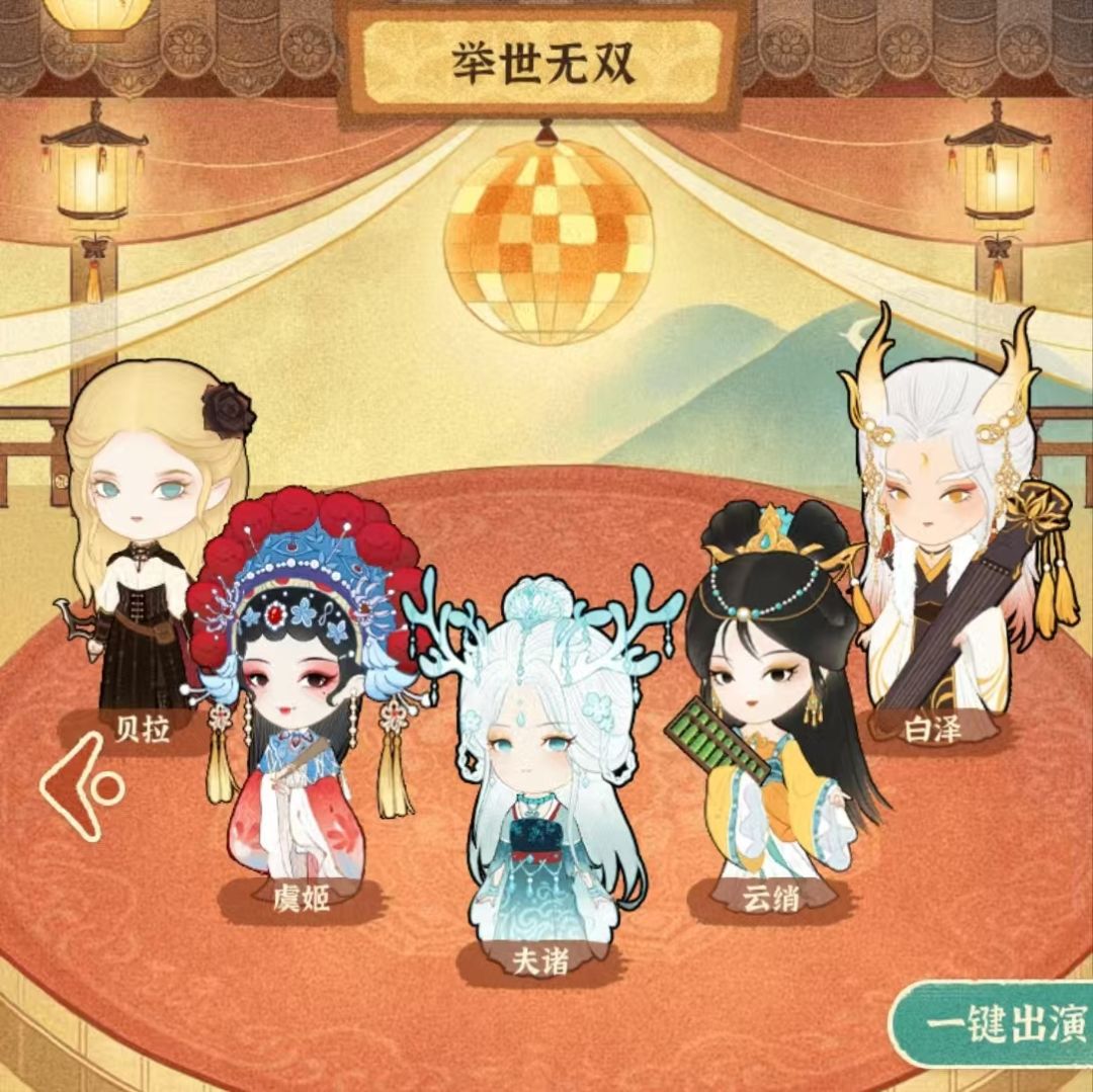 (高攻速高暴击,打快攻的乐器组合。建议升级角色,风华队:隐娘、狐狸、林妹妹 无双队:白泽、虞姬、云绡)
