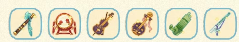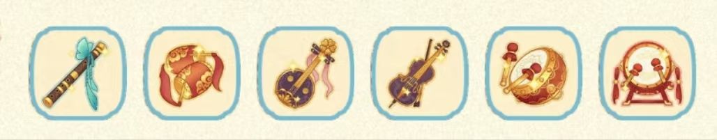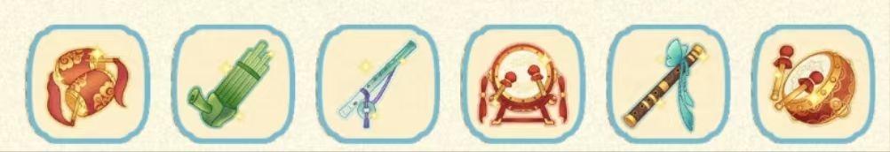 余音蓄力套:口笛,玉髓萧,玉髓笙,风云鼓,双腰鼓,大堂鼓。