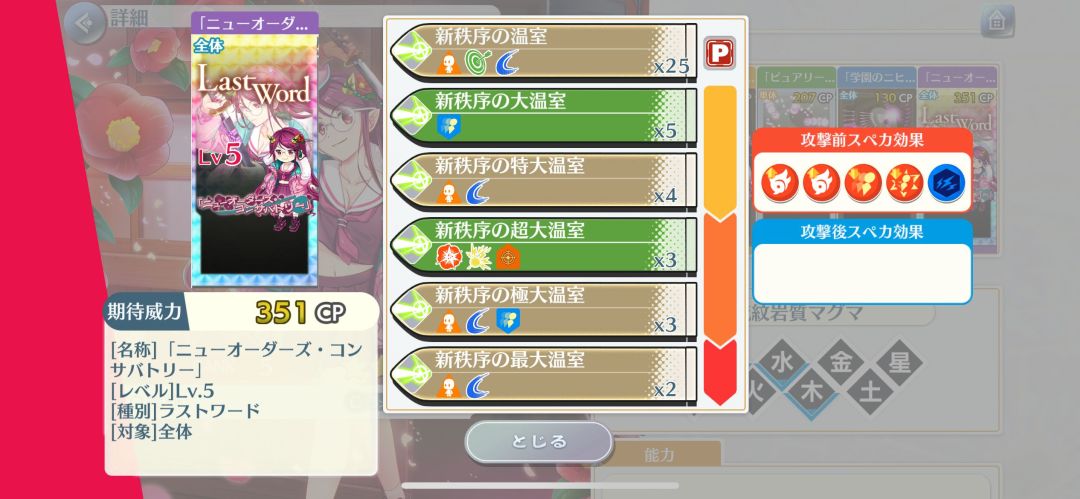 全体速度3段,会心攻击4段,