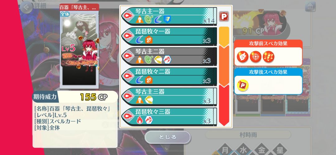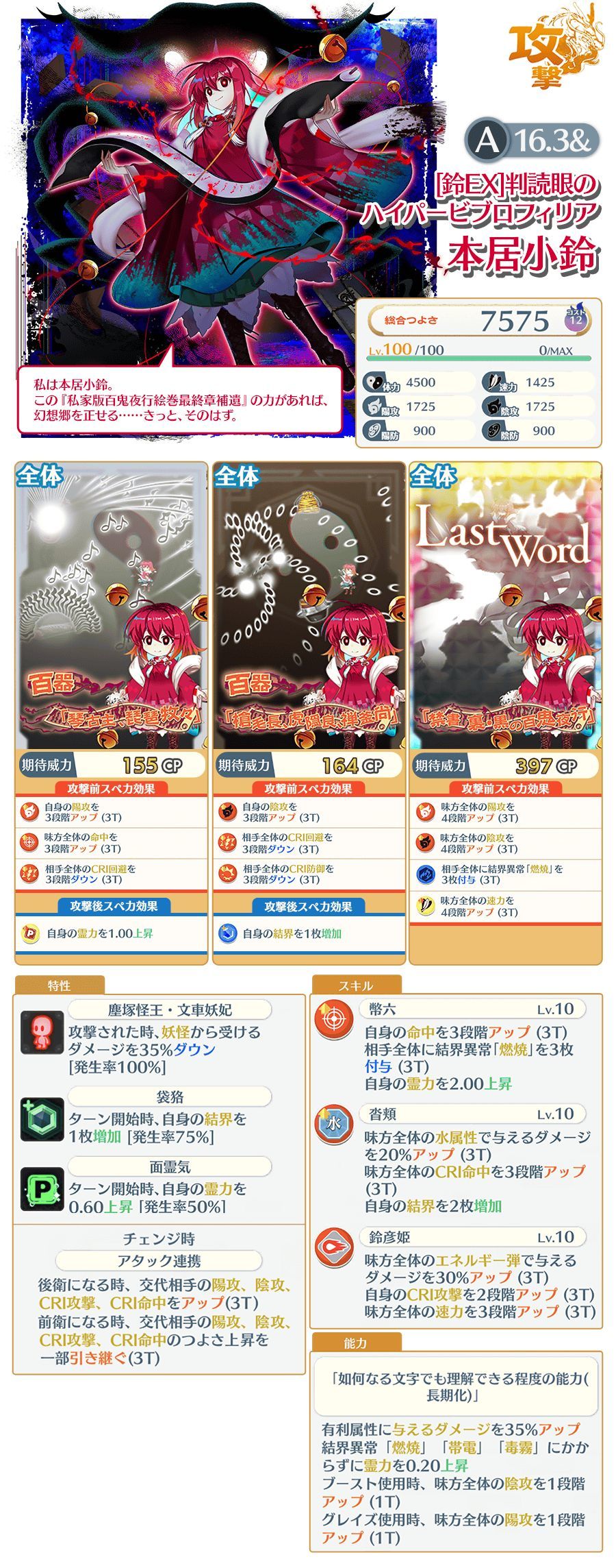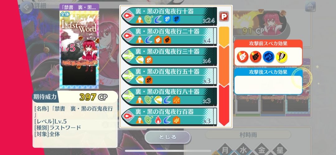 特攻:妖怪、妖兽、兽、人类、异变解决者、付丧神、骚灵、人里,难得看见一个全段落特攻是一样的,